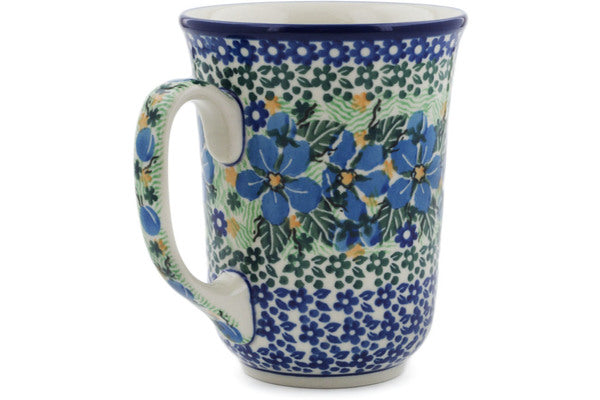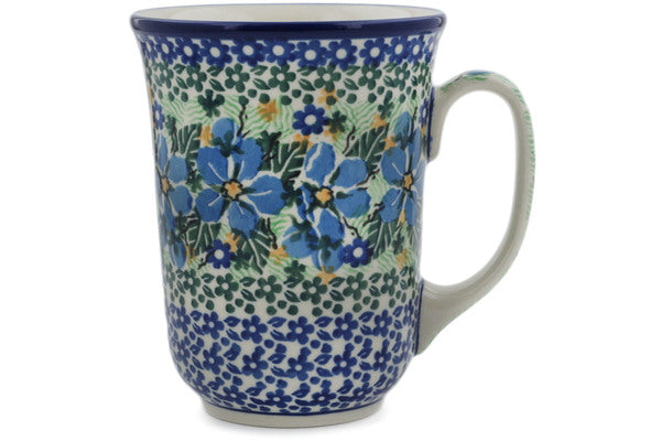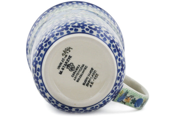 This Floral Blue Dreams 17 oz Bistro Mug was handmade and hand decorated in Boleslawiec, Poland by skilled artisans according to old traditional methods. This is a Polish pottery Signature Unikat, which means that it has been hand painted with both sponges and brushes and it is signed by the artist who painted it. Unikat pieces are the most intricate works of art. Larger Unikat items take hours of very careful work to finish. This Polish stoneware is microwave, dishwasher, freezer, and oven safe up to 480°F. It does not contain lead or cadmium. It is part of the Floral Blue Dreams Collection.