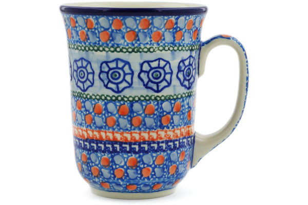 This Midnight Tango 17 oz Bistro Mug was handmade and hand decorated in Boleslawiec, Poland by skilled artisans according to old traditional methods. This is a Polish pottery Signature Unikat, which means that it has been hand painted with both sponges and brushes and it is signed by the artist who painted it. Unikat pieces are the most intricate works of art. Larger Unikat items take hours of very careful work to finish. This Polish stoneware is microwave, dishwasher, freezer, and oven safe up to 480°F. It does not contain lead or cadmium. It is part of the Midnight Tango Collection.