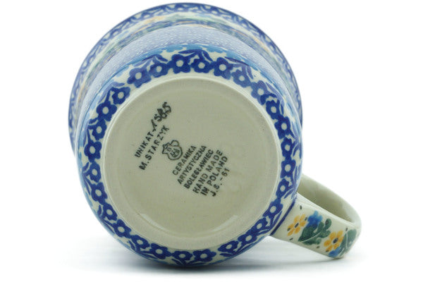 This Peeking Flowers 17 oz Bistro Mug was handmade and hand decorated in Boleslawiec, Poland by skilled artisans according to old traditional methods. This is a Polish pottery Signature Unikat, which means that it has been hand painted with both sponges and brushes and it is signed by the artist who painted it. Unikat pieces are the most intricate works of art. Larger Unikat items take hours of very careful work to finish. This Polish stoneware is microwave, dishwasher, freezer, and oven safe up to 480°F. It does not contain lead or cadmium. It is part of the Peeking Flowers Collection.
