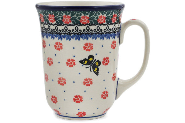 This Spring Butterfly 17 oz Bistro Mug was handmade and hand decorated in Boleslawiec, Poland by skilled artisans according to old traditional methods. This Polish stoneware is microwave, dishwasher, freezer, and oven safe up to 480°F. It does not contain lead or cadmium. It is part of the Spring Butterfly Collection.