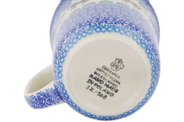 This Stallion Trot 17 oz Bistro Mug was handmade and hand decorated in Boleslawiec, Poland by skilled artisans according to old traditional methods. This Polish stoneware is microwave, dishwasher, freezer, and oven safe up to 480°F. It does not contain lead or cadmium. It is part of the Stallion Trot Collection.