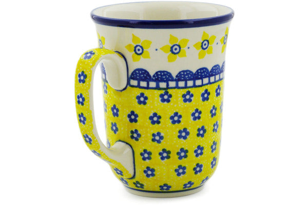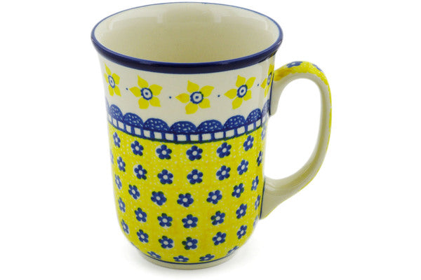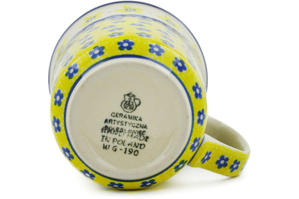 This Sunshine 17 oz Bistro Mug was handmade and hand decorated in Boleslawiec, Poland by skilled artisans according to old traditional methods. This Polish stoneware is microwave, dishwasher, freezer, and oven safe up to 480°F. It does not contain lead or cadmium. It is part of the Sunshine Collection.