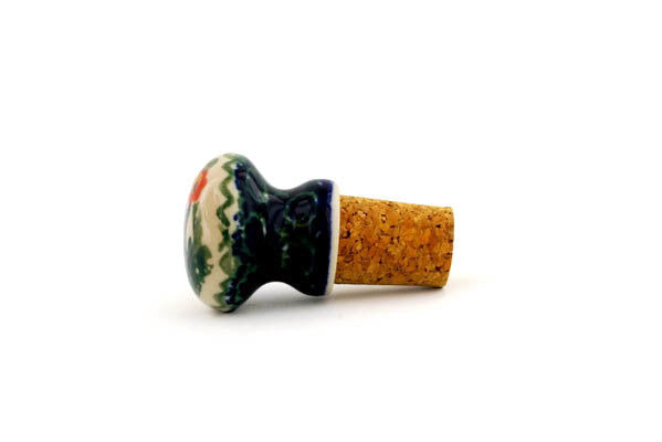 This Peach Spring Daisy 3" Bottle Stopper was handmade and hand decorated in Boleslawiec, Poland by skilled artisans according to old traditional methods. This Polish stoneware is microwave, dishwasher, freezer, and oven safe up to 480°F. It does not contain lead or cadmium. It is part of the Peach Spring Daisy Collection.