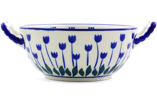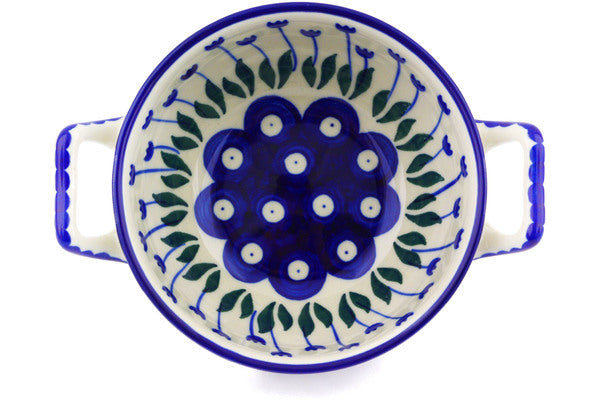 This Blue Tulip Peacock 10 oz Bouillon Cup was handmade and hand decorated in Boleslawiec, Poland by skilled artisans according to old traditional methods. This Polish stoneware is microwave, dishwasher, freezer, and oven safe up to 480°F. It does not contain lead or cadmium. It is part of the Blue Tulip Peacock Collection.