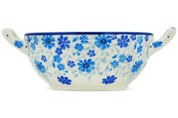 This Winter Serenity 10 oz Bouillon Cup was handmade and hand decorated in Boleslawiec, Poland by skilled artisans according to old traditional methods. This Polish stoneware is microwave, dishwasher, freezer, and oven safe up to 480°F. It does not contain lead or cadmium. It is part of the Winter Serenity Collection.