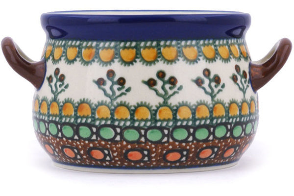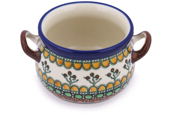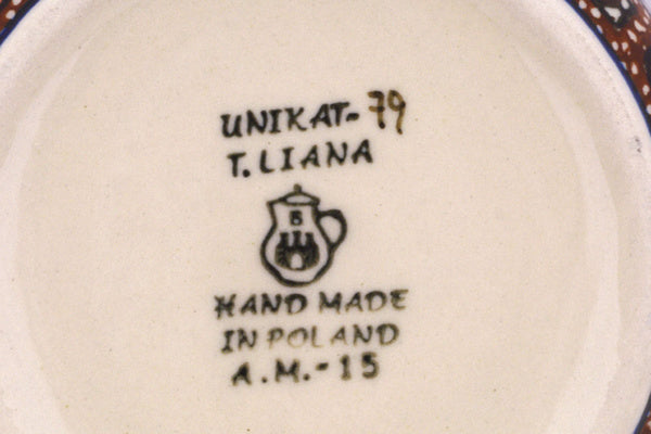 This Cranberry Medley 12 oz Bouillon Cup was handmade and hand decorated in Boleslawiec, Poland by skilled artisans according to old traditional methods. This is a Polish pottery Signature Unikat, which means that it has been hand painted with both sponges and brushes and it is signed by the artist who painted it. Unikat pieces are the most intricate works of art. Larger Unikat items take hours of very careful work to finish. This Polish stoneware is microwave, dishwasher, freezer, and oven safe up to 480°F. It does not contain lead or cadmium. It is part of the Cranberry Medley Collection.