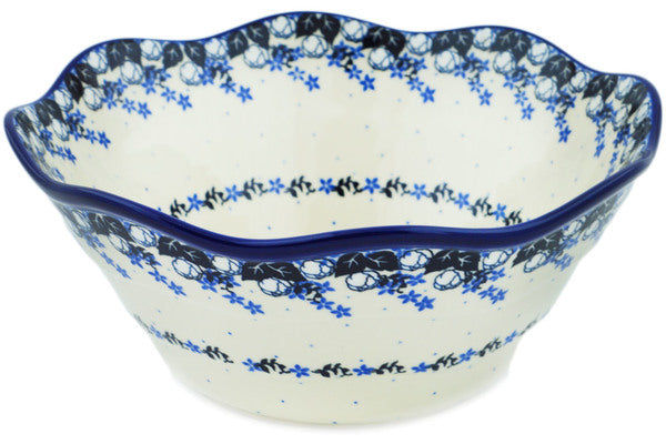 This Flowers At Dusk 10" Scalloped Bowl was handmade and hand decorated in Boleslawiec, Poland by skilled artisans according to old traditional methods. This Polish stoneware is microwave, dishwasher, freezer, and oven safe up to 480°F. It does not contain lead or cadmium. It is part of the Flowers At Dusk Collection.
