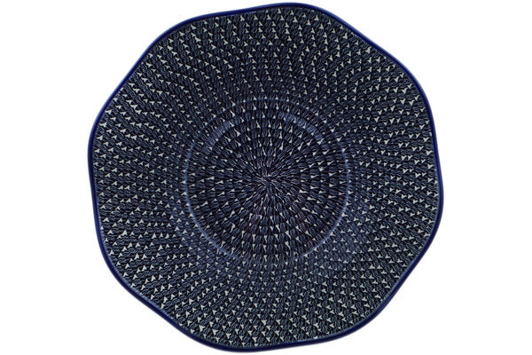This Midnight 10" Scalloped Bowl was handmade and hand decorated in Boleslawiec, Poland by skilled artisans according to old traditional methods. This is a Polish pottery Signature Unikat, which means that it has been hand painted with both sponges and brushes and it is signed by the artist who painted it. Unikat pieces are the most intricate works of art. Larger Unikat items take hours of very careful work to finish. This Polish stoneware is microwave, dishwasher, freezer, and oven safe up to 480°F. It does not contain lead or cadmium. It is part of the Midnight Collection.