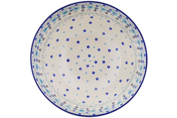 This Baby Blue Garden 11" Bowl was handmade and hand decorated in Boleslawiec, Poland by skilled artisans according to old traditional methods. This Polish stoneware is microwave, dishwasher, freezer, and oven safe up to 480°F. It does not contain lead or cadmium. It is part of the Baby Blue Garden Collection.