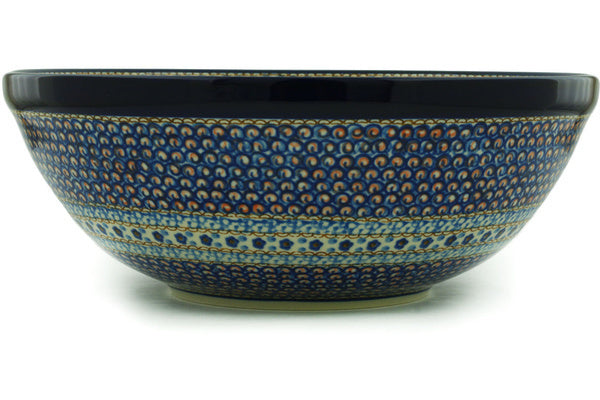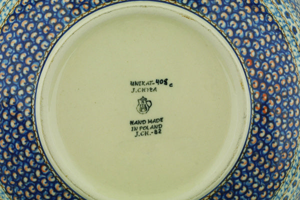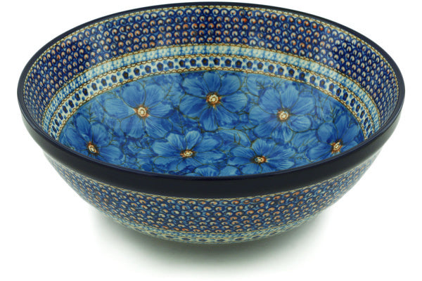 This Blue Poppies 13" Bowl was handmade and hand decorated in Boleslawiec, Poland by skilled artisans according to old traditional methods. This is a Polish pottery Signature Unikat, which means that it has been hand painted with both sponges and brushes and it is signed by the artist who painted it. Unikat pieces are the most intricate works of art. Larger Unikat items take hours of very careful work to finish. This Polish stoneware is microwave, dishwasher, freezer, and oven safe up to 480°F. It does not contain lead or cadmium. It is part of the Blue Poppies Collection.