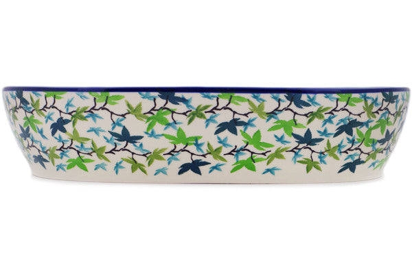 This Full Forest 14" Bowl was handmade and hand decorated in Boleslawiec, Poland by skilled artisans according to old traditional methods. This is a Polish pottery Signature Unikat, which means that it has been hand painted with both sponges and brushes and it is signed by the artist who painted it. Unikat pieces are the most intricate works of art. Larger Unikat items take hours of very careful work to finish. This Polish stoneware is microwave, dishwasher, freezer, and oven safe up to 480°F. It does not contain lead or cadmium. It is part of the Full Forest Collection.