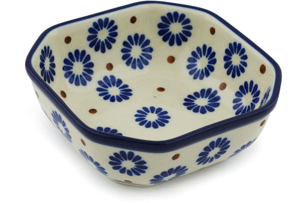 This Aster Polka Dot 4" Bowl was handmade and hand decorated in Boleslawiec, Poland by skilled artisans according to old traditional methods. This Polish stoneware is microwave, dishwasher, freezer, and oven safe up to 480°F. It does not contain lead or cadmium. It is part of the Aster Polka Dot Collection.