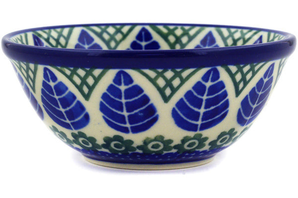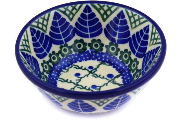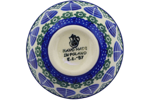 This Blue Alpine 4" Bowl was handmade and hand decorated in Boleslawiec, Poland by skilled artisans according to old traditional methods. This Polish stoneware is microwave, dishwasher, freezer, and oven safe up to 480°F. It does not contain lead or cadmium. It is part of the Blue Alpine Collection.