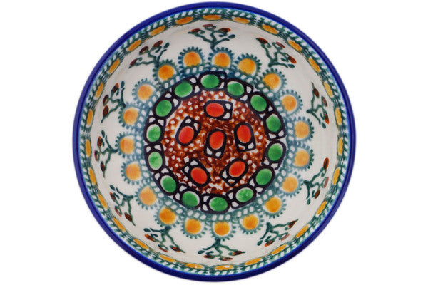 This Cranberry Medley 4" Bowl was handmade and hand decorated in Boleslawiec, Poland by skilled artisans according to old traditional methods. This is a Polish pottery Signature Unikat, which means that it has been hand painted with both sponges and brushes and it is signed by the artist who painted it. Unikat pieces are the most intricate works of art. Larger Unikat items take hours of very careful work to finish. This Polish stoneware is microwave, dishwasher, freezer, and oven safe up to 480°F. It does not contain lead or cadmium. It is part of the Cranberry Medley Collection.
