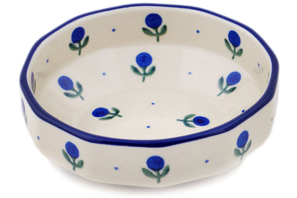 This Blue Buds 5" Bowl was handmade and hand decorated in Boleslawiec, Poland by skilled artisans according to old traditional methods. This Polish stoneware is microwave, dishwasher, freezer, and oven safe up to 480°F. It does not contain lead or cadmium. It is part of the Blue Buds Collection.