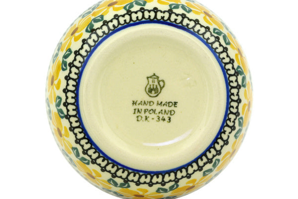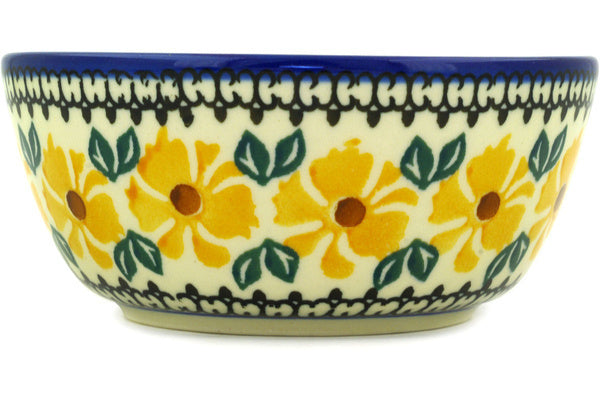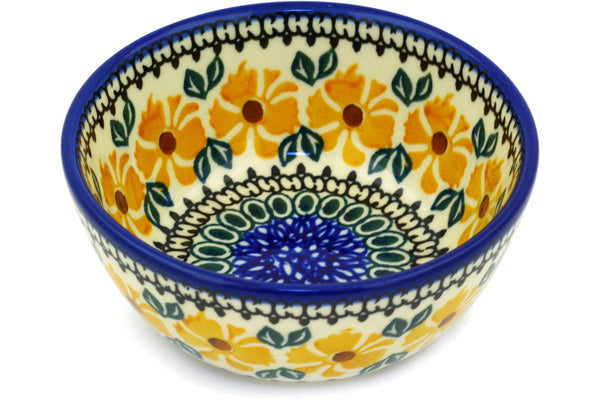 This Yellow Morning Glory 5" Bowl was handmade and hand decorated in Boleslawiec, Poland by skilled artisans according to old traditional methods. This Polish stoneware is microwave, dishwasher, freezer, and oven safe up to 480°F. It does not contain lead or cadmium. It is part of the Yellow Morning Glory Collection.