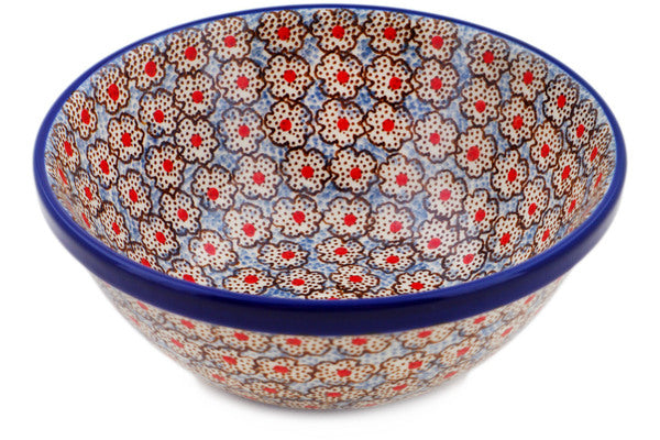 This Black Daisies 6" Bowl was handmade and hand decorated in Boleslawiec, Poland by skilled artisans according to old traditional methods. This is a Polish pottery Signature Unikat, which means that it has been hand painted with both sponges and brushes and it is signed by the artist who painted it. Unikat pieces are the most intricate works of art. Larger Unikat items take hours of very careful work to finish. This Polish stoneware is microwave, dishwasher, freezer, and oven safe up to 480°F. It does not contain lead or cadmium. It is part of the Black Daisies Collection.