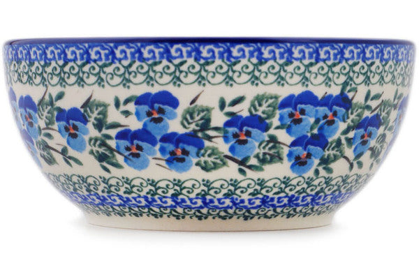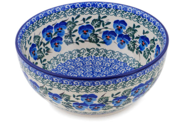 This Blue Pansy 6" Bowl was handmade and hand decorated in Boleslawiec, Poland by skilled artisans according to old traditional methods. This Polish stoneware is microwave, dishwasher, freezer, and oven safe up to 480°F. It does not contain lead or cadmium. It is part of the Blue Pansy Collection.