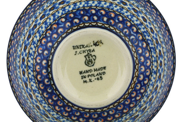 This Cobalt Poppies 6" Bowl was handmade and hand decorated in Boleslawiec, Poland by skilled artisans according to old traditional methods. This is a Polish pottery Signature Unikat, which means that it has been hand painted with both sponges and brushes and it is signed by the artist who painted it. Unikat pieces are the most intricate works of art. Larger Unikat items take hours of very careful work to finish. This Polish stoneware is microwave, dishwasher, freezer, and oven safe up to 480°F. It does not contain lead or cadmium. It is part of the Cobalt Poppies Collection.