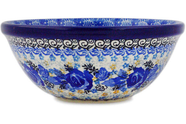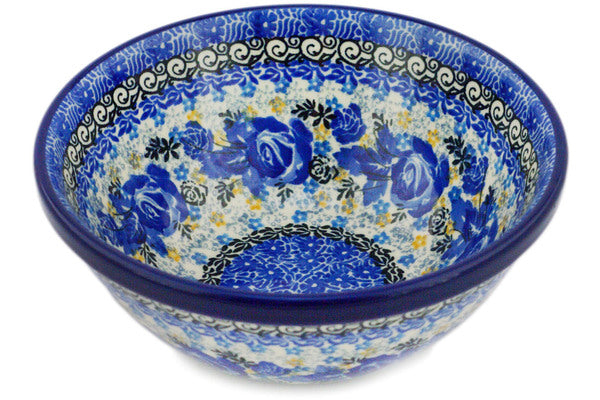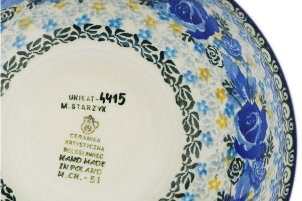 This Cobalt Rose Chain 6" Bowl was handmade and hand decorated in Boleslawiec, Poland by skilled artisans according to old traditional methods. This is a Polish pottery Signature Unikat, which means that it has been hand painted with both sponges and brushes and it is signed by the artist who painted it. Unikat pieces are the most intricate works of art. Larger Unikat items take hours of very careful work to finish. This Polish stoneware is microwave, dishwasher, freezer, and oven safe up to 480°F. It does not contain lead or cadmium. It is part of the Cobalt Rose Chain Collection.