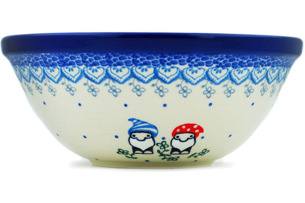 This Papa Gnome 6" Bowl was handmade and hand decorated in Boleslawiec, Poland by skilled artisans according to old traditional methods. This Polish stoneware is microwave, dishwasher, freezer, and oven safe up to 480°F. It does not contain lead or cadmium. It is part of the Papa Gnome Collection.