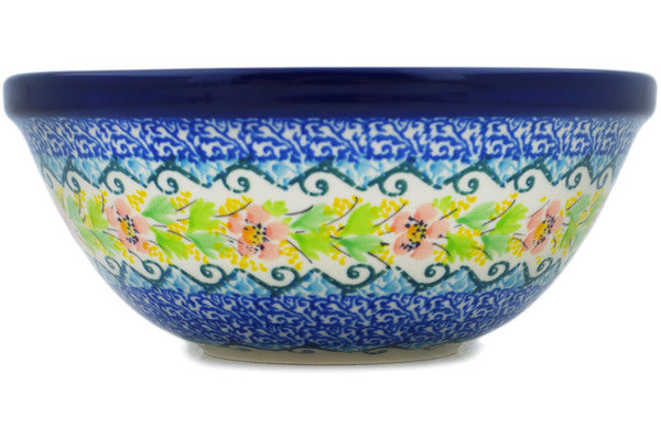 This Petal Dance 6" Bowl was handmade and hand decorated in Boleslawiec, Poland by skilled artisans according to old traditional methods. This is a Polish pottery Signature Unikat, which means that it has been hand painted with both sponges and brushes and it is signed by the artist who painted it. Unikat pieces are the most intricate works of art. Larger Unikat items take hours of very careful work to finish. This Polish stoneware is microwave, dishwasher, freezer, and oven safe up to 480°F. It does not contain lead or cadmium. It is part of the Petal Dance Collection.