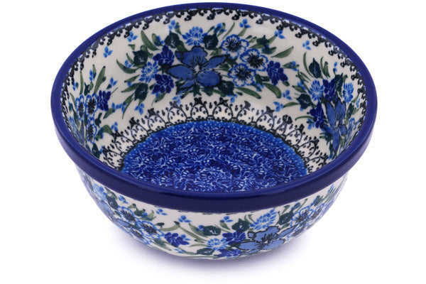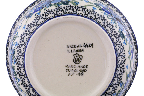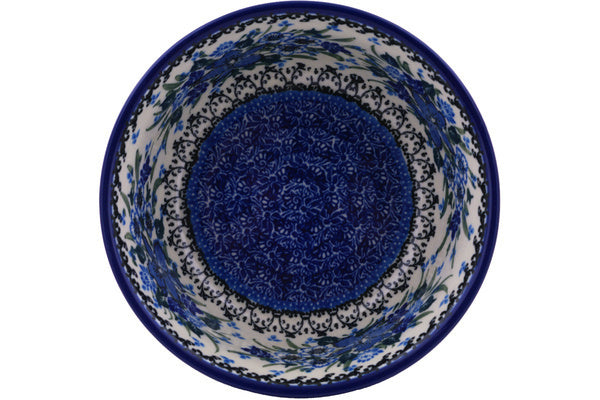 This Rhapsody In Blue 6" Bowl was handmade and hand decorated in Boleslawiec, Poland by skilled artisans according to old traditional methods. This is a Polish pottery Signature Unikat, which means that it has been hand painted with both sponges and brushes and it is signed by the artist who painted it. Unikat pieces are the most intricate works of art. Larger Unikat items take hours of very careful work to finish. This Polish stoneware is microwave, dishwasher, freezer, and oven safe up to 480°F. It does not contain lead or cadmium. It is part of the Rhapsody In Blue Collection.