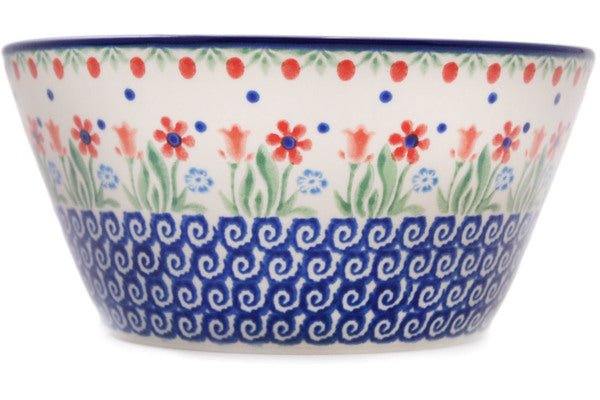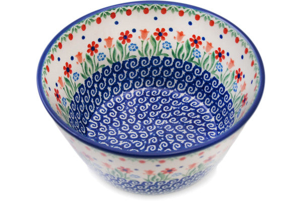 This Babcia's Garden 7" Bowl was handmade and hand decorated in Boleslawiec, Poland by skilled artisans according to old traditional methods. This Polish stoneware is microwave, dishwasher, freezer, and oven safe up to 480°F. It does not contain lead or cadmium. It is part of the Babcia's Garden Collection.