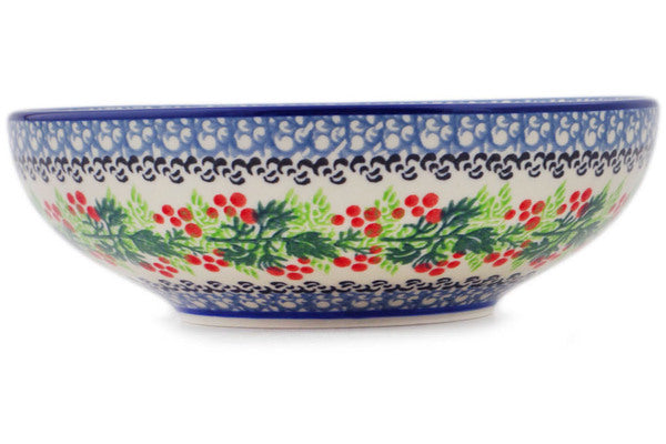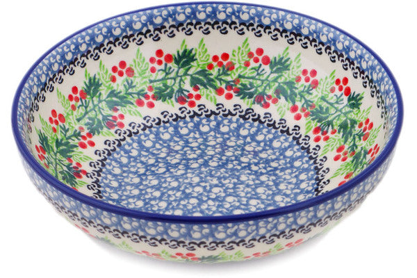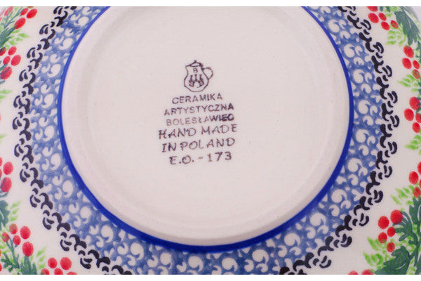 This Holly Berry Wreath 7" Bowl was handmade and hand decorated in Boleslawiec, Poland by skilled artisans according to old traditional methods. This Polish stoneware is microwave, dishwasher, freezer, and oven safe up to 480°F. It does not contain lead or cadmium. It is part of the Holly Berry Wreath Collection.