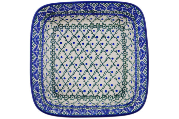 This Blue Alpine 8" Bowl was handmade and hand decorated in Boleslawiec, Poland by skilled artisans according to old traditional methods. This Polish stoneware is microwave, dishwasher, freezer, and oven safe up to 480°F. It does not contain lead or cadmium. It is part of the Blue Alpine Collection.
