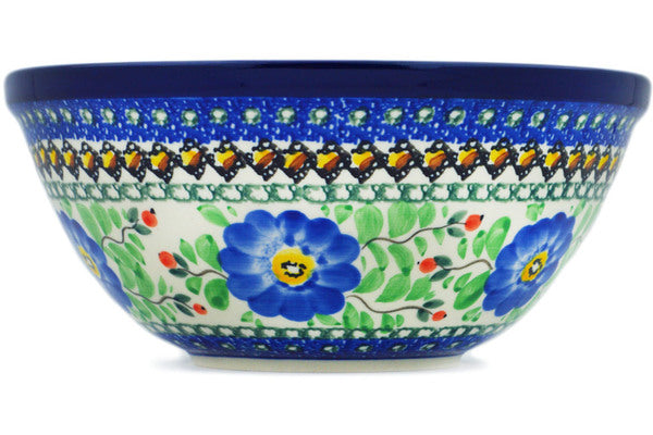 This Cobalt Poppies 8" Bowl was handmade and hand decorated in Boleslawiec, Poland by skilled artisans according to old traditional methods. This is a Polish pottery Signature Unikat, which means that it has been hand painted with both sponges and brushes and it is signed by the artist who painted it. Unikat pieces are the most intricate works of art. Larger Unikat items take hours of very careful work to finish. This Polish stoneware is microwave, dishwasher, freezer, and oven safe up to 480°F. It does not contain lead or cadmium. It is part of the Cobalt Poppies Collection.