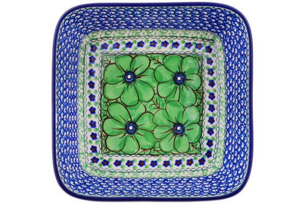 This Green Pansies 8" Bowl was handmade and hand decorated in Boleslawiec, Poland by skilled artisans according to old traditional methods. This is a Polish pottery Signature Unikat, which means that it has been hand painted with both sponges and brushes and it is signed by the artist who painted it. Unikat pieces are the most intricate works of art. Larger Unikat items take hours of very careful work to finish. This Polish stoneware is microwave, dishwasher, freezer, and oven safe up to 480°F. It does not contain lead or cadmium. It is part of the Green Pansies Collection.