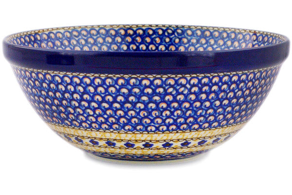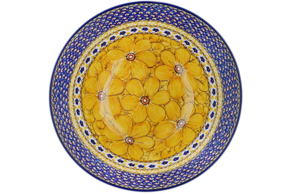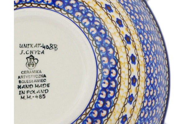 This Marigold Dreams 9" Bowl was handmade and hand decorated in Boleslawiec, Poland by skilled artisans according to old traditional methods. This is a Polish pottery Signature Unikat, which means that it has been hand painted with both sponges and brushes and it is signed by the artist who painted it. Unikat pieces are the most intricate works of art. Larger Unikat items take hours of very careful work to finish. This Polish stoneware is microwave, dishwasher, freezer, and oven safe up to 480°F. It does not contain lead or cadmium. It is part of the Marigold Dreams Collection.