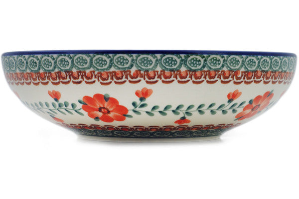 This Radiant Green Meadow 9" Bowl was handmade and hand decorated in Boleslawiec, Poland by skilled artisans according to old traditional methods. This Polish stoneware is microwave, dishwasher, freezer, and oven safe up to 480°F. It does not contain lead or cadmium. It is part of the Radiant Green Meadow Collection.
