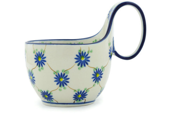 This Aster Trellis 16 oz Bowl with Loop-Handle was handmade and hand decorated in Boleslawiec, Poland by skilled artisans according to old traditional methods. This Polish stoneware is microwave, dishwasher, freezer, and oven safe up to 480°F. It does not contain lead or cadmium. It is part of the Aster Trellis Collection.