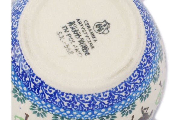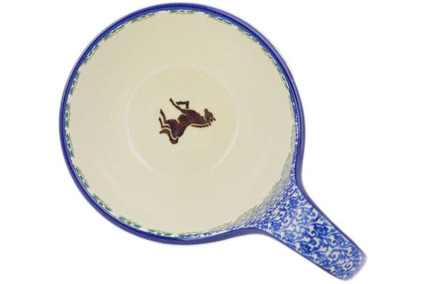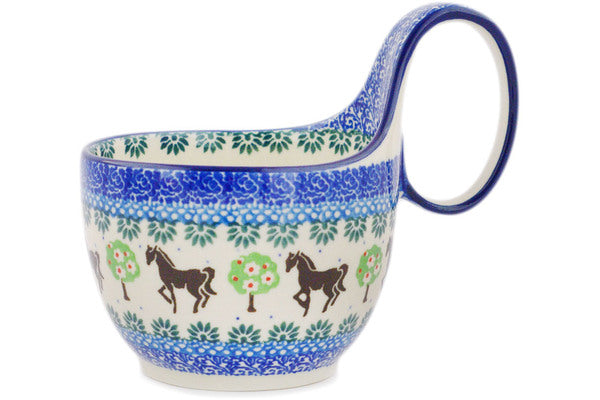 This Stallion Trot 16 oz Bowl with Loop-Handle was handmade and hand decorated in Boleslawiec, Poland by skilled artisans according to old traditional methods. This Polish stoneware is microwave, dishwasher, freezer, and oven safe up to 480°F. It does not contain lead or cadmium. It is part of the Stallion Trot Collection.