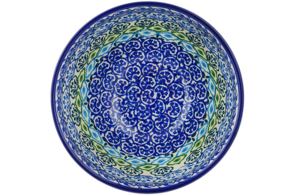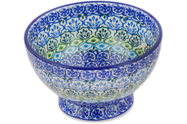 This Ocean Tulips 5" Bowl with Pedestal was handmade and hand decorated in Boleslawiec, Poland by skilled artisans according to old traditional methods. This Polish stoneware is microwave, dishwasher, freezer, and oven safe up to 480°F. It does not contain lead or cadmium. It is part of the Ocean Tulips Collection.