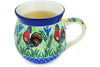 This Sand Dollar Flowers 12oz Bubble Mug was handmade and hand decorated in Boleslawiec, Poland by skilled artisans according to old traditional methods. This is a Polish pottery Signature Unikat, which means that it has been hand painted with both sponges and brushes and it is signed by the artist who painted it. Unikat pieces are the most intricate works of art. Larger Unikat items take hours of very careful work to finish. This Polish stoneware is microwave, dishwasher, freezer, and oven safe up to 480°F. It does not contain lead or cadmium. It is part of the Sand Dollar Flowers Collection.