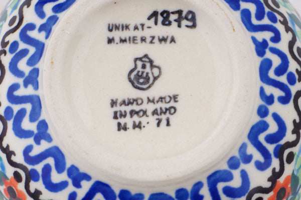 This Blooming Symphony 12oz Bubble Mug was handmade and hand decorated in Boleslawiec, Poland by skilled artisans according to old traditional methods. This is a Polish pottery Signature Unikat, which means that it has been hand painted with both sponges and brushes and it is signed by the artist who painted it. Unikat pieces are the most intricate works of art. Larger Unikat items take hours of very careful work to finish. This Polish stoneware is microwave, dishwasher, freezer, and oven safe up to 480°F. It does not contain lead or cadmium. It is part of the Blooming Symphony Collection.
