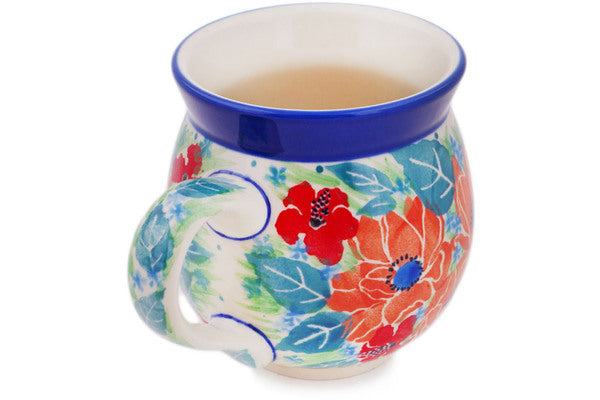 This Harmonious 12oz Bubble Mug was handmade and hand decorated in Boleslawiec, Poland by skilled artisans according to old traditional methods. This is a Polish pottery Signature Unikat, which means that it has been hand painted with both sponges and brushes and it is signed by the artist who painted it. Unikat pieces are the most intricate works of art. Larger Unikat items take hours of very careful work to finish. This Polish stoneware is microwave, dishwasher, freezer, and oven safe up to 480°F. It does not contain lead or cadmium. It is part of the Harmonious Collection.