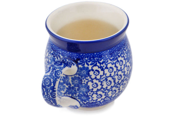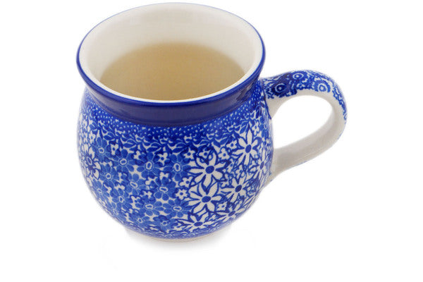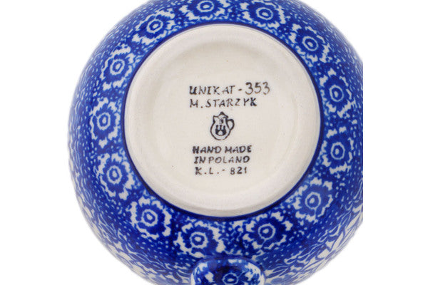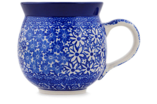 This Moody Blues 12oz Bubble Mug was handmade and hand decorated in Boleslawiec, Poland by skilled artisans according to old traditional methods. This is a Polish pottery Signature Unikat, which means that it has been hand painted with both sponges and brushes and it is signed by the artist who painted it. Unikat pieces are the most intricate works of art. Larger Unikat items take hours of very careful work to finish. This Polish stoneware is microwave, dishwasher, freezer, and oven safe up to 480°F. It does not contain lead or cadmium. It is part of the Moody Blues Collection.