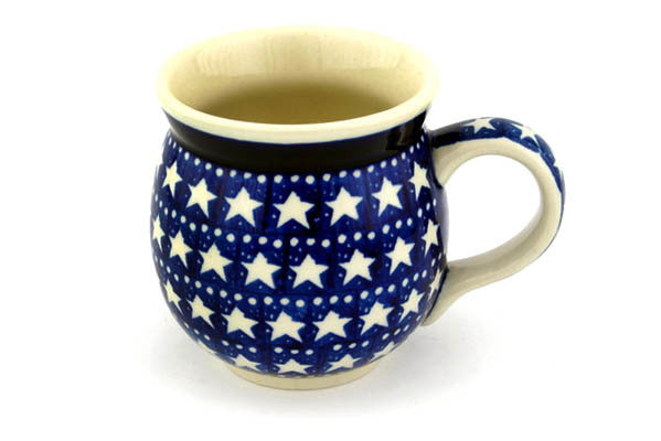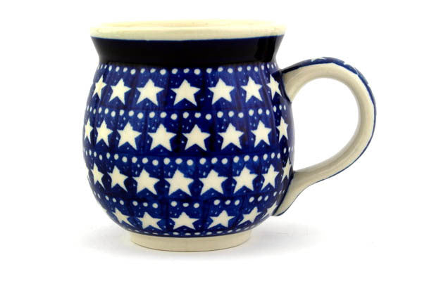 This Midnight Stars 16 oz Bubble Mug was handmade and hand decorated in Boleslawiec, Poland by skilled artisans according to old traditional methods. This Polish stoneware is microwave, dishwasher, freezer, and oven safe up to 480°F. It does not contain lead or cadmium. It is part of the Midnight Stars Collection.
