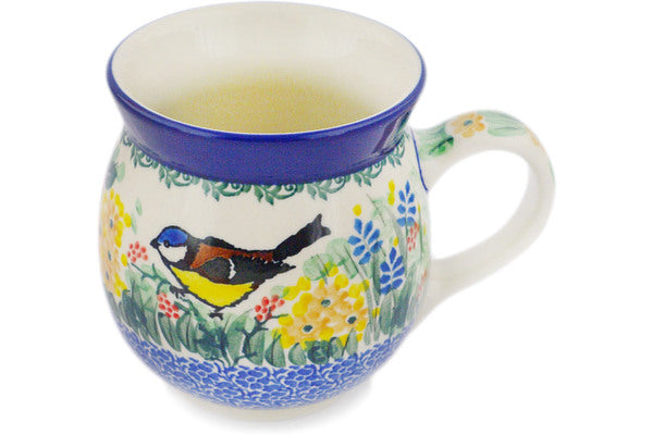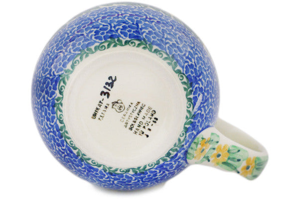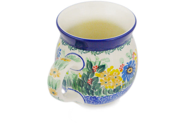 This Yellow Belly Beauty 16 oz Bubble Mug was handmade and hand decorated in Boleslawiec, Poland by skilled artisans according to old traditional methods. This is a Polish pottery Signature Unikat, which means that it has been hand painted with both sponges and brushes and it is signed by the artist who painted it. Unikat pieces are the most intricate works of art. Larger Unikat items take hours of very careful work to finish. This Polish stoneware is microwave, dishwasher, freezer, and oven safe up to 480°F. It does not contain lead or cadmium. It is part of the Yellow Belly Beauty Collection.