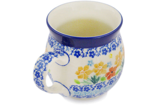 This Creamy Saffron 8 oz Bubble Mug was handmade and hand decorated in Boleslawiec, Poland by skilled artisans according to old traditional methods. This Polish stoneware is microwave, dishwasher, freezer, and oven safe up to 480°F. It does not contain lead or cadmium. It is part of the Creamy Saffron Collection.