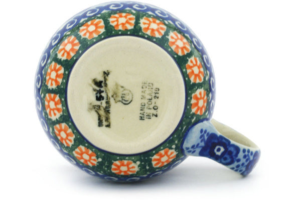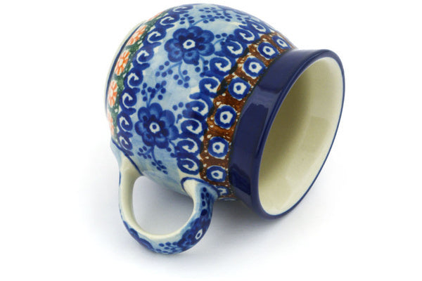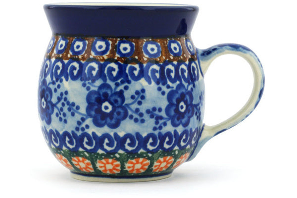 This Dancing Blue Poppies 8 oz Bubble Mug was handmade and hand decorated in Boleslawiec, Poland by skilled artisans according to old traditional methods. This is a Polish pottery Signature Unikat, which means that it has been hand painted with both sponges and brushes and it is signed by the artist who painted it. Unikat pieces are the most intricate works of art. Larger Unikat items take hours of very careful work to finish. This Polish stoneware is microwave, dishwasher, freezer, and oven safe up to 480°F. It does not contain lead or cadmium. It is part of the Dancing Blue Poppies Collection.
