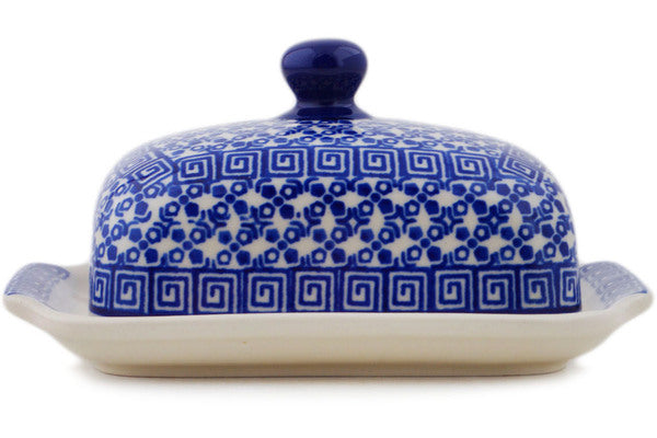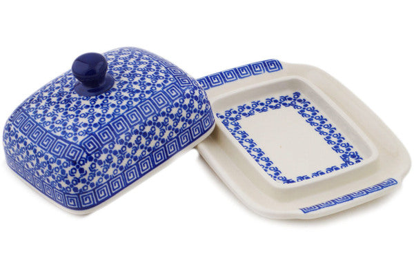 This Grecian Vines 7" Butter Dish was handmade and hand decorated in Boleslawiec, Poland by skilled artisans according to old traditional methods. This Polish stoneware is microwave, dishwasher, freezer, and oven safe up to 480°F. It does not contain lead or cadmium. It is part of the Grecian Vines Collection.