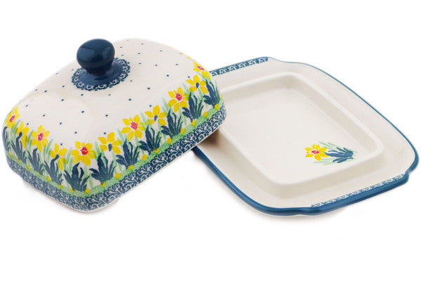 This Summer Meadow 7" Butter Dish was handmade and hand decorated in Boleslawiec, Poland by skilled artisans according to old traditional methods. This Polish stoneware is microwave, dishwasher, freezer, and oven safe up to 480°F. It does not contain lead or cadmium. It is part of the Summer Meadow Collection.
