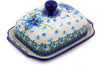 This Elegance 9" Butter Dish was handmade and hand decorated in Boleslawiec, Poland by skilled artisans according to old traditional methods. This is a Polish pottery Signature Unikat, which means that it has been hand painted with both sponges and brushes and it is signed by the artist who painted it. Unikat pieces are the most intricate works of art. Larger Unikat items take hours of very careful work to finish. This Polish stoneware is microwave, dishwasher, freezer, and oven safe up to 480°F. It does not contain lead or cadmium. It is part of the Elegance Collection.