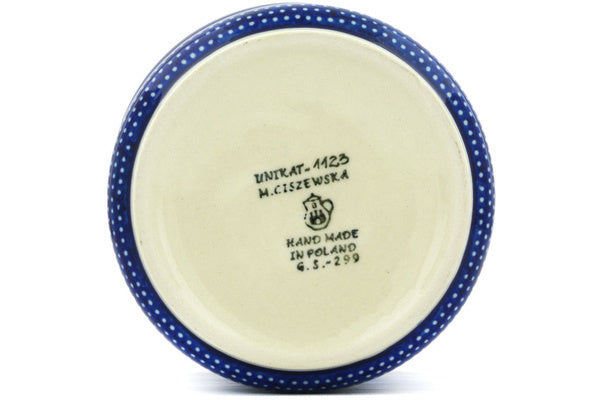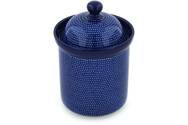 This Starry Night 8" Canister 8" was handmade and hand decorated in Boleslawiec, Poland by skilled artisans according to old traditional methods. This is a Polish pottery Signature Unikat, which means that it has been hand painted with both sponges and brushes and it is signed by the artist who painted it. Unikat pieces are the most intricate works of art. Larger Unikat items take hours of very careful work to finish. This Polish stoneware is microwave, dishwasher, freezer, and oven safe up to 480°F. It does not contain lead or cadmium. It is part of the Starry Night Collection.