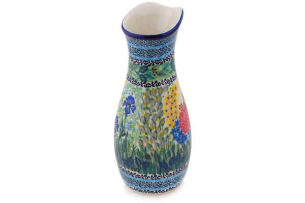 This Spring Garden 5 Cup Carafe was handmade and hand decorated in Boleslawiec, Poland by skilled artisans according to old traditional methods. This is a Polish pottery Signature Unikat, which means that it has been hand painted with both sponges and brushes and it is signed by the artist who painted it. Unikat pieces are the most intricate works of art. Larger Unikat items take hours of very careful work to finish. This Polish stoneware is microwave, dishwasher, freezer, and oven safe up to 480°F. It does not contain lead or cadmium. It is part of the Spring Garden Collection.